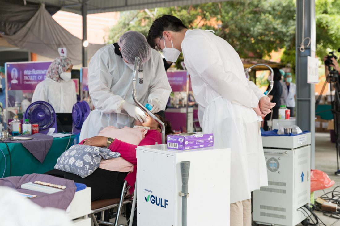 อ.ทพ.ดร.ณัฐวุฒิ คุตตะเทพ รองคณบดีฝ่ายกายภาพ คณะทันตะ จุฬาฯ กล่าวว่า ทางคณะทันตแพทยศาสตร์ จุฬาฯและกัลฟ์ ได้ร่วมมือกันออกหน่วยทันตกรรมเคลื่อนที่มาอย่างต่อเนื่อง และความพิเศษของการออกหน่วยในครั้งนี้ได้มีการนำกระบวนการในโครงการทันตกรรมทางไกล (Teledentistry) ของคณะทันตะ จุฬาฯ ที่นำระบบดิจิทัลมาใช้ร่วมกับการรักษาทันตกรรม โดยมีการนำเอาเครื่องสแกนฟันในช่องปาก ระบบสามมิติ (Intra-Oral Scanner) เพื่อใส่ฟันเทียมให้คนไข้ มาร่วมใช้ในการออกหน่วยทันตกรรมเคลื่อนที่ครั้งนี้ด้วย