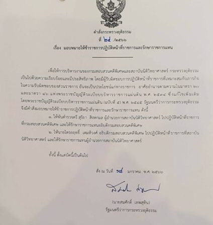 ล่าสุดนายสมศักดิ์ เทพสุทิน รมว.ยุติธรรม ได้ลงนามในคำสั่งลงวันที่ 18 ม.ค. 2566 เรื่อง มอบหมายให้ข้าราชการปฏิบัติหน้าที่ราชการและรักษาราชการแทน โดยให้ นายไตรยฤทธิ์ เตมหิวงศ์ อธิบดีกรมสอบสวนคดีพิเศษ ไปปฏิบัติหน้าที่ราชการที่สถาบันนิติวิทยาศาสตร์ และรักษาราชการแทนผู้อำนวยการสถาบันนิติวิทยาศาสตร์ โดยให้ พ.ต.ต.สุริยา สิงหกมล ผอ.สถาบันนิติวิทยาศาสตร์ ไปปฏิบัติหน้าที่ราชการที่กรมสอบสวนคดีพิเศษ และให้รักษาราชการแทนอธิบดีกรมสอบสวนคดีพิเศษ เพื่อให้การบริหารงานของกรมสอบสวนคดีพิเศษและสถาบันนิติวิทยาศาสตร์ กระทรวงยุติธรรม เป็นไปด้วยความเรียบร้อยและมีประสิทธิภาพ โดยมีผู้รับผิดชอบการปฏิบัติหน้าที่ราชการที่เหมาะสมกับภารกิจในความรับผิดชอบของส่วนราชการ ซึ่งจะเป็นประโยชน์ของทางราชการโดยอาศัยอำนาจตามมาตรา 20 และมาตรา 46 แห่ง พ.ร.บ.ระเบียบบริหารราชการแผ่นดิน พ.ศ. 2534 และแก้ไขเพิ่มเติม (ฉบับที่ 5) พ.ศ. 2545 โดยมีผลตั้งแต่บัดนี้เป็นต้นไป