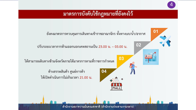 สำหรับคลินิกเสริมความงาม ยังคงยกเว้นในส่วนของใบหน้า และสถานบริการ นวดสุขภาพ สปา นวดฝ่าเท้า ให้เปิดได้ใช้เวลาไม่เกิน 2 ชั่วโมง ยกเว้นอบไอน้ำ อาบอบนวดยังไม่เปิด