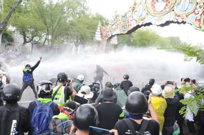 ตำรวจระดมฉีดน้ำสกัด “ม็อบปลดแอก”ขวางผู้ชุมนุมเคลื่อนบุกเข้าทำเนียบฯ