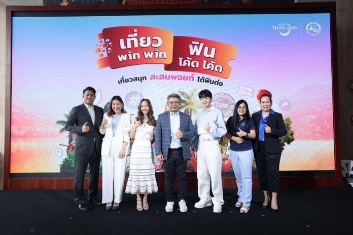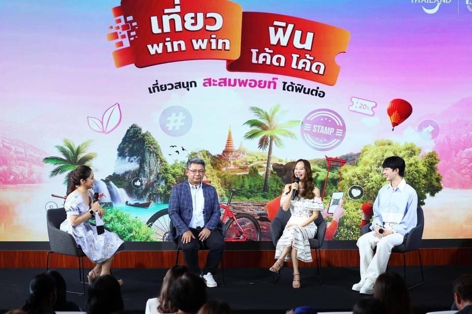 นายนิธี สีแพร รองผู้ว่าการด้านดิจิทัล วิจัย และพัฒนา การท่องเที่ยวแห่งประเทศไทย (ททท.) เปิดเผยว่า ททท.ร่วมกับพันธมิตรเปิดแคมเปญ “เที่ยว Win Win ฟิน โค้ด โค้ด” (เที่ยวสนุก สะสมพ้อยท์ ได้ฟินต่อ) โดยมอบส่วนลดพิเศษและดีลท่องเที่ยวสุดคุ้มผ่านทางแพลตฟอร์ม Line MyShop กับ LAZADA โดยได้นำศิลปินดัง “เต้ย-จรินทร์พร จุนเกียรติ” ตัวแทนนักท่องเที่ยวคนรุ่นใหม่ใส่ใจสิ่งแวดล้อมมานำเสนอแคมเปญดังกล่าว เสริมทัพด้วย “นุนิว–ชวรินทร์ เพริศพิริยะวงศ์” ร่วมสร้างแรงบันดาลใจสู่การเดินทางท่องเที่ยว และจัดกิจกรรมเอ็กซ์คลูซีฟการท่องเที่ยวเชิงอนุรักษ์