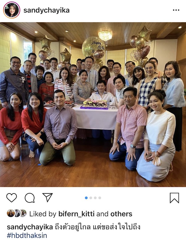 ผู้สื่อสื่อข่าวรายงานเพิ่มเติมว่า ช่วงวันเกิดของนายทักษิณ ทุกปีที่ผ่านมา บรรดา ลูกๆ หลานๆ และสมาชิกพรรค ตั้งแต่ไทยรักไทย พลังประชาชน พรรคไทยรักษาชาติ และรวมพลคนรัก”ทักษิณ”จะเดินทางไปอวยพรวันเกิด แต่เนื่องจากปีนี้ เกิดการแพร่ระบาดไวรัสโควิด-19 ไม่สามารถเดินทางไปอวยพรได้ ทำให้ต้องอวยพรผ่านทางโซเซียล และวีดีอโอ คอลล์ เพื่อได้พูดคุยกัน บรรยากาศการอวยพร เป็นไปด้วยความอบอุ่น คึกคัก เสมือนร่วมงานวันเกิดจริง เหมือนทุกปี