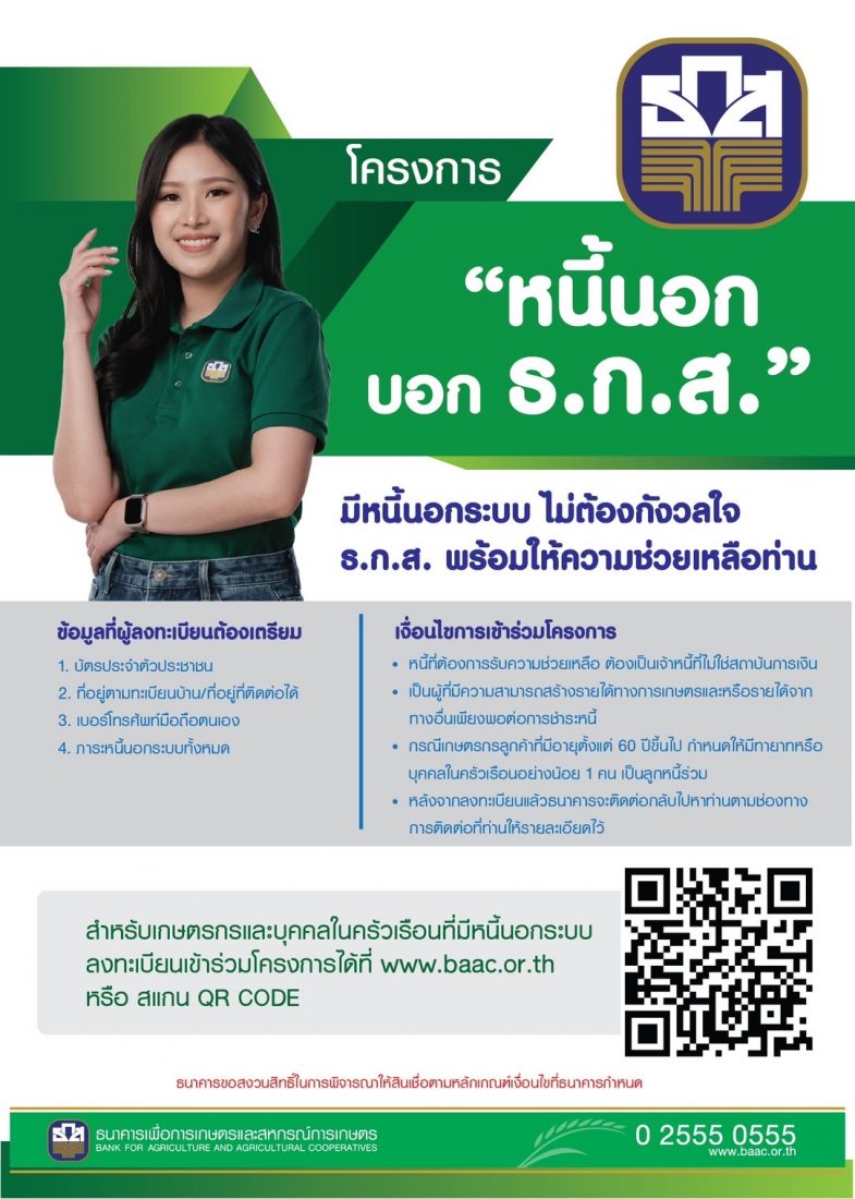 - เปิดช่องทางช่วยเกษตรกรลูกค้า-คนในครอบครัวที่มีหนี้นอกระบบ และต้องการก้าวพ้นกับดักหนี้