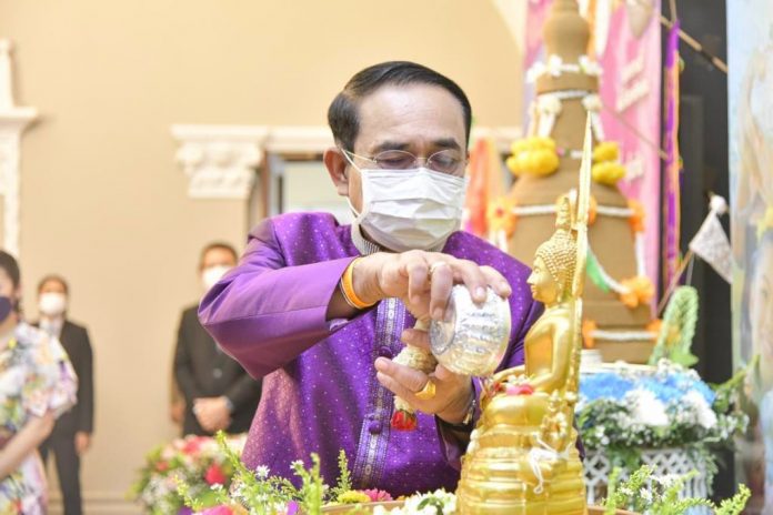 วันนี้ (12 เม.ย.) พล.อ.ประยุทธ์ จันทร์โอชา นายกรัฐมนตรี และรัฐมนตรีว่าการกระทรวงกลาโหม ได้โพสต์ข้อความผ่านแฟนเพจเฟซบุ๊ก “ประยุทธ์ จันทร์โอชา Prayut Chan-o-cha” เพื่ออวยพรพี่น้องประชาชนในเทศกาลสงกรานต์ โดยระบุว่า “ในช่วงเทศกาลสงกรานต์ปีนี้ ผมขอให้พี่น้องคนไทยทุกคนพักผ่อนกับครอบครัวอย่างมีความสุข และด้วยความระมัดระวังนะครับ ท่านที่กลับภูมิลำเนาหรือไปท่องเที่ยว ขอให้เดินทางโดยสวัสดิภาพครับ และขอให้ร่วมกันดูแลตัวเอง ดูแลครอบครัว โดยเฉพาะผู้สูงอายุ อย่าลืมว่าเราทุกคนยังต้องยกการ์ดให้สูง สวมหน้ากากอนามัยกันตลอดเวลานะครับ เพื่อดูแลทั้งตัวเราเองและคนที่เรารัก สวัสดีปีใหม่ไทยทุกท่านล่วงหน้าครับ”