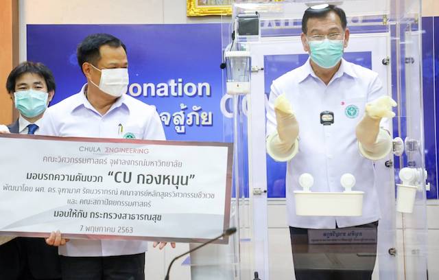 7 พฤษภาคม 2563 ที่กระทรวงสาธารณสุข นายอนุทิน ชาญวีรกูล รองนายกรัฐมนตรีและรัฐมนตรีว่าการกระทรวงสาธารณสุข นายแพทย์สุขุม กาญจนพิมาย ปลัดกระทรวงสาธารณสุข นำคณะผู้บริหารรับมอบการสนับสนุนจากภาคเอกชน ในการป้องกันโรคระบาดของไวรัสโคโรนาสายพันธุ์ใหม่ 2019 หรือโควิด 19 ประกอบไปด้วย บริษัท คิงส์แบ็ก จำกัด เจ้าของ แบรนด์ฮีโร่ สนับสนุนถุงซิปอเนกประสงค์ 1 ล้าน 2 พันใบ มูลค่า 3.5 ล้านบาท, แบรนด์ คูโบต้า มอบตู้ความดันลบ และหุ่นยนต์ส่งยาและอาหาร มูลค่ารวม 3.7 ล้านบาท, กลุ่ม EGCO บริษัท ผลิตไฟฟ้า จำกัด มหาชน มอบหลอดไฟ UV สำหรับติดตั้งในเครื่องอบฆ่าเชื้อ, สถาบันกวดวิชา เคมี อ.อุ๊ มอบเงินช่วยเหลือ 1 ล้านบาท, สมาคมอัสสัมชัญ โครงการอัสสัมชนิก สนับสนุนชุด PPE และอุปกรณ์ทงการแพทย์ เป็นเงินจำนวน 3 แสนบาท, กลุ่ม “แสนสิริ” สนับสนุ เครื่องช่วยหายใจ หน้ากาก N95 และ ชุด PPE มูลค่า 8 ล้านบาท, กลุ่ม วบส.1 สนับสนุนตู้อบฆ่าเชื้อ และคณะวิศวกรรมศาสตร์ จุฬาลงกรณ์มหาวิทยาลัย