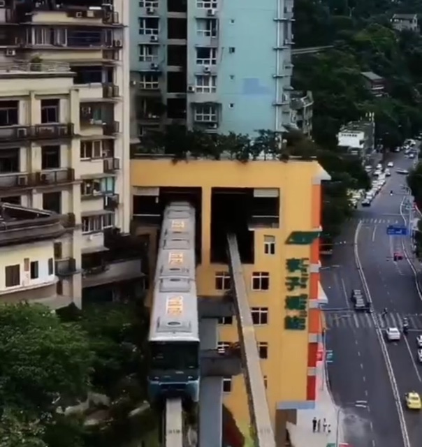โดยรถไฟฟ้าที่ว่านี้คือ รถไฟฟ้าสาย 2 ของมหานครฉงชิ่ง ที่กำลังวิ่งผ่านสถานีหลีจื่อป้า (Liziba Station) โดยรถไฟฟ้าจะทำการวิ่งทะลุตึก 19 ชั้น ซึ่งเป็นอาคารที่พักอาศัยของประชาชน โดยสิ่งที่แปลกแต่จริงคือ รถไฟฟ้าสายนี้ถูกสร้างขึ้นโดยไม่ต้องรื้อถอนตึกดังกล่าวเลย ซึ่งตัวสถานีหลีจื่อป้า ใช้พื้นที่เพียงชั้น 6-8 ของตัวอาคาร ปรับปรุงเป็นตัวสถานีเท่านั้น