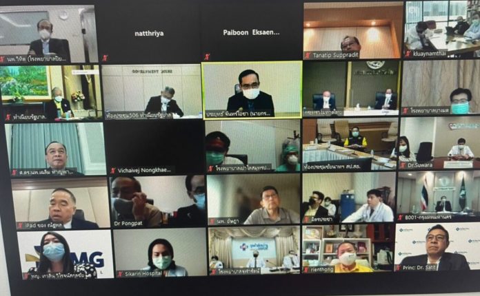 โดยมีนายอนุทิน ชาญวีรกูล รองนายกรัฐมนตรีและรัฐมนตรีว่าการกระทรวงสาธารณสุข พล.อ.อนุพงษ์ เผ่าจินดา รัฐมนตรีว่าการกระทรวงมหาดไทย นายสาธิต ปิตุเตชะ รัฐมนตรีช่วยว่าการกระทรวงสาธารณสุข พล.อ.ณัฐพล นาคพาณิชย์ เลขาธิการสภาความมั่นคงแห่งชาติ นายฉัตรชัย พรหมเลิศ ปลัดกระทรวงมหาดไทย นายแพทย์เกียรติภูมิ วงศ์รจิต ปลัดกระทรวงสาธารณสุข และทีมแพทย์สาธารณสุข เข้าร่วมประชุมกับ ผู้บริหารโรงพยาบาลเอกชน