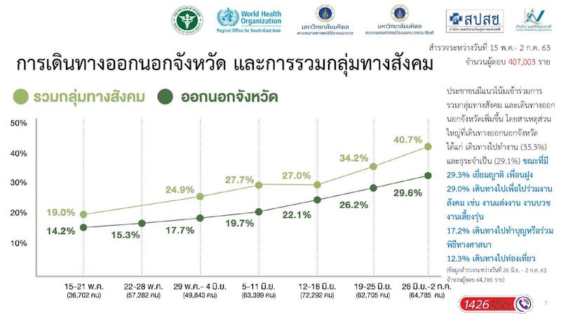 - คนไทยประมาทหย่อนพฤติกรรมการป้องกันตนเอง เกิดการรวมกลุ่ม เดินทางออกนอกจังหวัดมากขึ้น