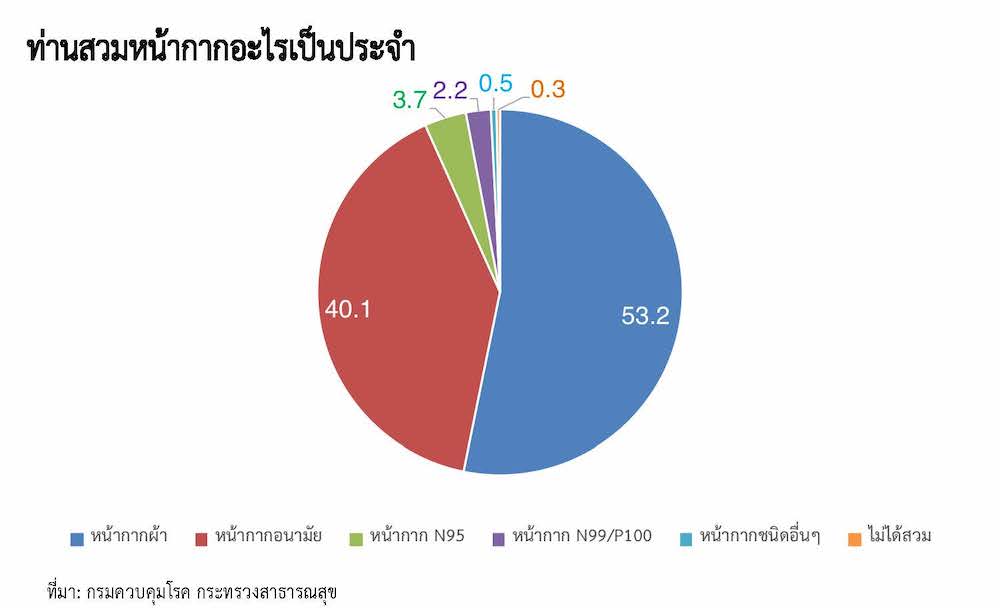 นายแพทย์โสภณ เอี่ยมศิริถาวร ผู้อำนวยการกองโรคติดต่อทั่วไป กรมควบคุมโรค กล่าวว่า ในขณะนี้ประเทศไทยอยู่ในช่วงที่ประชาชนเริ่มผ่อนคลายจากจำนวนผู้ป่วยที่ลดลงอย่างต่อเนื่อง เริ่มมีการเดินทาง พบปะกันมากขึ้น ที่สำคัญ คือ ต้องเข้มงวดมาตรการป้องกันโรค การรักษาระยะห่างอย่างน้อย 2 เมตร สวมใส่หน้ากากผ้าหรือหน้ากากอนามัย หมั่นล้างมือ ไม่สัมผัสจมูก ปาก หรือขยี้ตา ทั้งนี้ กรมควบคุมโรคได้ทำการสำรวจพฤติกรรมการสวมหน้ากากของประชาชนในช่วงสถานการณ์การระบาดของโรคโควิด 19 ต่อเนื่องจำนวน 5 ครั้ง โดยครั้งที่ 5 เมื่อสัปดาห์ที่ผ่านมา พบว่าเมื่อมีอาการไข้ และหวัด เช่น ไอ จาม มีน้ำมูก ประชาชนจะสวมหน้ากากป้องกันการแพร่เชื้อถึงร้อยละ 83 และสวมหน้ากากอนามัยเพื่อป้องกันไม่ให้รับเชื้ออีกร้อยละ 12 แต่มีร้อยละ 4 ที่ตอบไม่สวมหน้ากากป้องกัน ซึ่งเป็นพฤติกรรมที่น่าเป็นห่วงที่จะแพร่โรคให้คนอื่นได้