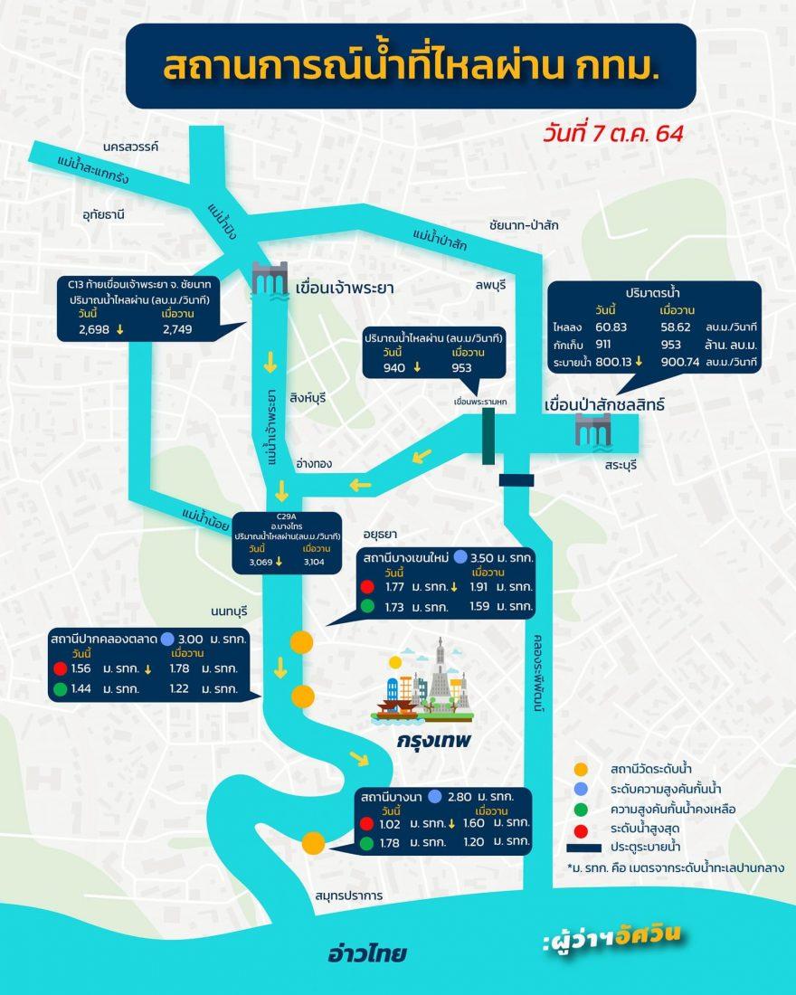 สถานการณ์น้ำในแม่น้ำเจ้าพระยาที่ไหลผ่าน กทม. (วันที่ 7 ต.ค. 64)
