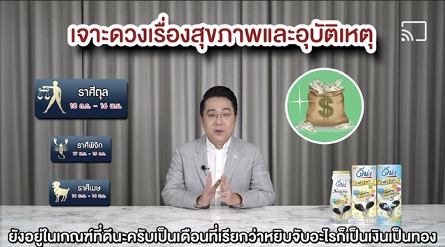 ราศีพิจิก : ต้องฝากเตือนในเรื่องของสุขภาพเป็นหลัก เพราะช่วงนี้เหมือนเป็นช่วงที่ร่างกายอาจมีประเด็นปัญหาในเรื่องของการเจ็บป่วยเรื่องโรคประจำตัว ต้องระมัดระวัง และอย่าประมาท ใครที่มีโรคประจำตัวก็เรียกว่าต้องนัดหมอต้องอย่าให้ยาขาด จะเดินทางไปไหนมาไหนต้องใช้สติ ใช้ความรอบคอบให้มากยิ่งขึ้น แต่ก็มีข่าวดี ในเรื่องงาน เรื่องเงิน มีความก้าวหน้าเข้ามามากยิ่งขึ้น อะไรที่ถูกชะลอ ถูกหยุดจะเดินหน้าต่อไปในเดือนนี้ ทำให้เกิดโอกาสด้านการเงินที่ดีรายได้มีความมั่นคง