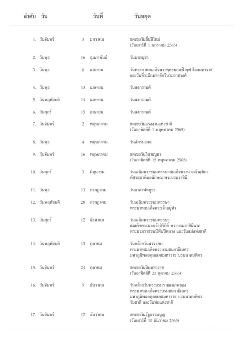 มาแล้ว…ธปท.กำหนดวันหยุดธนาคารปี 65 รวมทั้งสิ้น 17 วัน