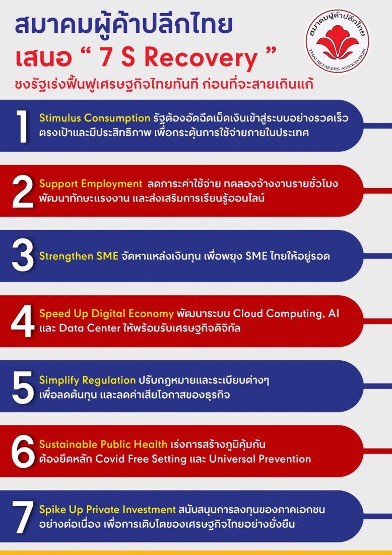 ทั้งนี้ สมาคมฯ ขอนำเสนอแนวทาง “ 7 S Recovery ” เพื่อฟื้นฟูเศรษฐกิจไทยโดยเร่งด่วน ดังนี้