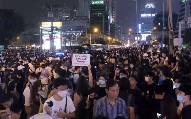 ผู้สื่อข่าวรายงานว่า วันนี้ (26 ต.ค.2563) เมื่อเวลาประมาณ 18.50 น. มวลชนของกลุ่มราษฎรได้เคลื่อนขบวนจากแยกสามย่านที่นัดรวมตัวกัน และจากนั้นก็ได้ออกเดินขบวนมาถึงบริเวณด้านหน้าสถานเอกอัครราชทูตเยอรมนี ประจำประเทศไทย ถนนสาทร ซี่งพอเดินทางมาถึงทางกลุ่มผู้ชุมนุมก็ได้มีการปราศรัยโจมตีรัฐบาล พร้อมชูสัญลักษณ์ 3 นิ้วพร้อมเตรียมจะยื่นหนังสือให้ทางสถานทูตฯ