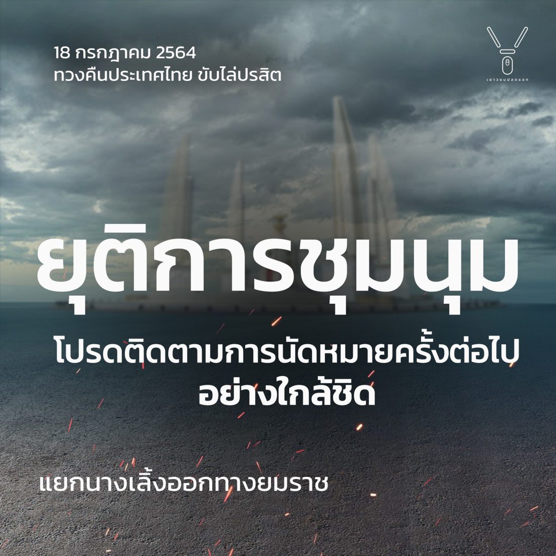 เวลา 18.23 น. ม็อบประกาศขอให้ไปตั้งหลักแยกยมราชก่อน เนื่องจากจะมีการเสริม เจ้าที่ คฝ. มาจากแยกผ่านฟ้า