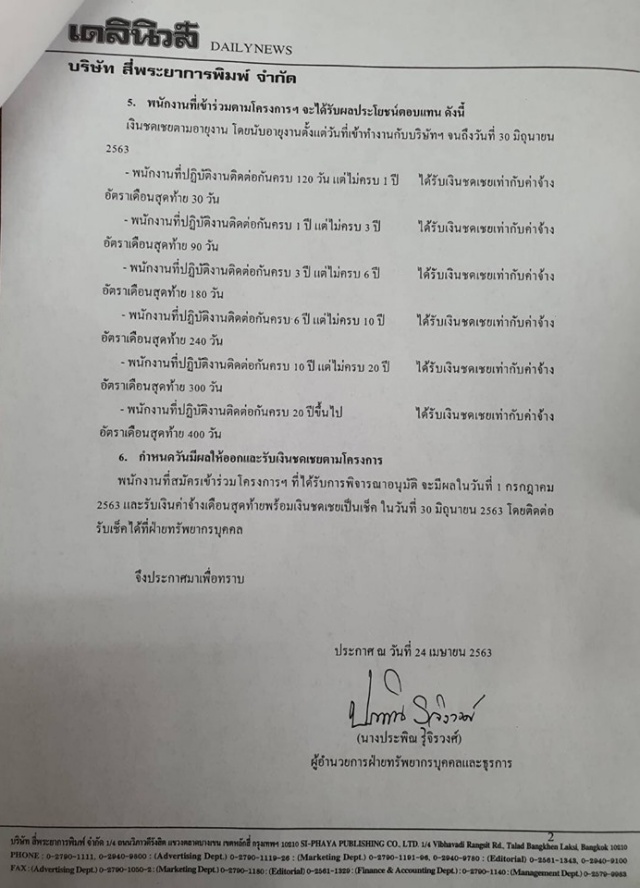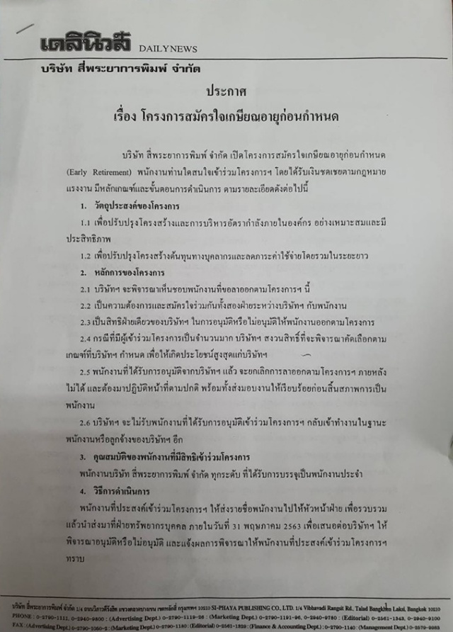 - “เดลินิวส์” เปิดโครงการสมัครใจเกษียณอายุก่อนกำหนด
