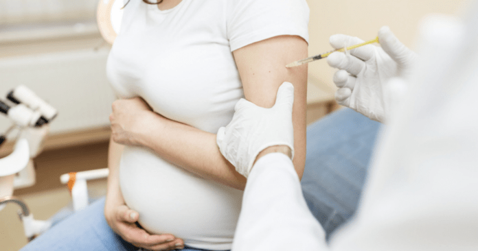 โดยมีเงื่อนไขอยู่ว่า หญิงตั้งครรภ์จะต้องมีอายุครรภ์เกิน 12 สัปดาห์ หรือ 3 เดือนขึ้นไป เนื่องจากในช่วงก่อน 12 สัปดาห์ ยังไม่อนุญาตให้ฉีดวัคซีน อีกทั้งยังมีคำแนะนำด้วยว่า หากผู้หญิงที่กำลังจะเข้ารับการฉีดวัคซีนและมีประวัติไม่แน่ใจว่าจะตั้งครรภ์หรือไม่ ขอให้ตรวจครรภ์ก่อนที่จะเข้าไปรับการฉีดวัคซีน
