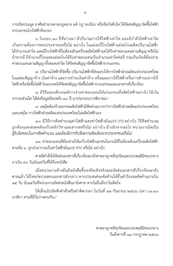 ศาลได้ตรวจคำฟ้องและเอกสารท้ายฟ้องฉบับใหม่ของโจทก์ ฉบับลงวันที่ 16 มิถุนายน 2566 แล้ว เห็นว่า เพื่อให้ได้ข้อเท็จจริงครบถ้วน ให้มีหนังสือถึงสำนักงานนโยบายและแผนพลังงาน