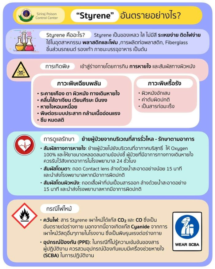 ผู้สื่อข่าวรายงานว่า ศูนย์พิษวิทยา ศิริราช ได้โพสต์ข้อความผ่านทางเฟซบุ๊ก : Siriraj Poison Control Center โดยกล่าวถึงกรณีโรงงานระเบิดที่กิ่งแก้ว มีเนื้อหาระบุว่า สืบเนื่องจาก เหตุการณ์ระเบิดของโรงงานผลิตเม็ดพลาสติก(EPS) ในเช้ามืดวันที่ 5 ก.ค. ที่ผ่านมานี้