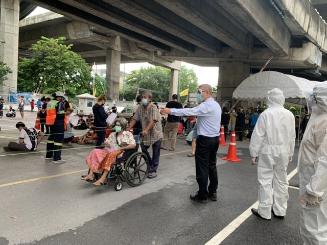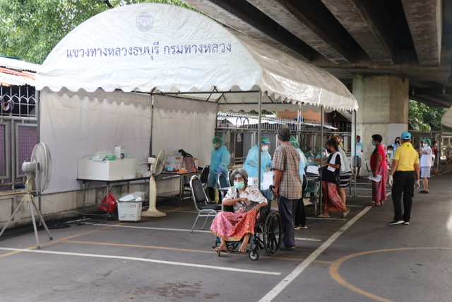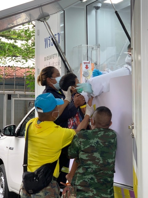 ผู้สื่อข่าวรายงานว่า สำนักงานนโยบายและแผนการขนส่งและจราจร (สนข.) ได้จัดเตรียมพื้นที่รองรับพี่น้องประชาชนที่เข้ารับการตรวจคัดกรองเชื้อไวรัส COVID-19 (โควิด-19) เชิงรุก จำนวน 1,000 คน โดยได้รับพระราชทานรถเก็บตัวอย่างชีวนิรภัยเพื่อตรวจคัดกรอง COVID-19 เชิงรุก ซึ่ง สนข. ได้รับความร่วมมือจากสถาบันป้องกันควบคุมโรคเขตเมือง กรมควบคุมโรค กระทรวงสาธารณสุข สำนักอนามัย กรุงเทพมหานคร สำนักงานเขตราชเทวี กรมทางหลวงและกรมเจ้าท่าในการจัดหาเต๊นท์ป้องกันแดดและฝน รวมทั้ง จัดเตรียมระบบไฟฟ้า ตลอดจนเจ้าหน้าที่ตำรวจ ทหารและจิตอาสาพระราชทาน ที่ช่วยอำนวยความสะดวกให้กับพี่น้องประชาชน