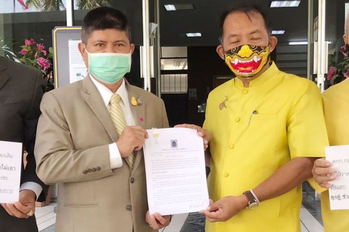 วันนี้ (21 มิ.ย.64) เมื่อเวลา 10.00 น.ที่ศูนย์รับเรื่องร้องเรียนฯ ทำเนียบรัฐบาล นายศรีสุวรรณ จรรยา เลขาธิการสมาคมองค์การพิทักษ์รัฐธรรมนูญไทย และนายพลภาขุน เศรษฐบดี แกนนำคณะราษฎรไทยแห่งชาติ ได้เดินทางมายื่นหนังสือถึง พล.อ.ประยุทธ์ จันทร์โอชา นายกรัฐมนตรี และ รมว.กลาโหม เพื่อขอให้ตั้งกรรมการสอบการประมูลรถไฟทางคู่สายใหม่ที่ส่อพิรุธ