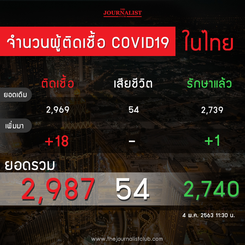 - ไทยสะสม 2,987 คน ไม่มีผู้ชีวิต