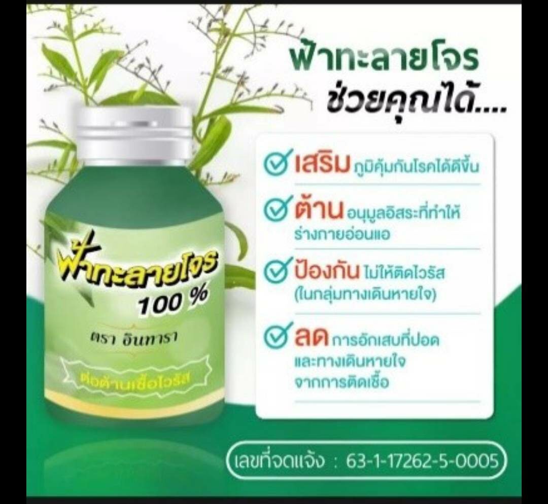 2.ผลิตภัณฑ์ฟ้าทะลายโจร ตราอินทารา ฉลากระบุเลข อย. 63-1-17262-5-0005 และโฆษณาสรรพคุณเสริมภูมิคุ้มกันโรค ป้องกันไม่ให้ติดไวรัสในกลุ่มทางเดินหายใจ และช่วยป้องกันไวรัสโควิด-19 ตรวจสอบแล้วพบว่า ผลิตภัณฑ์ดังกล่าวได้รับอนุญาตเป็นผลิตภัณฑ์เสริมอาหารในชื่อ อินทรา-015 (ผลิตภัณฑ์เสริมอาหาร) ไม่มีฟ้าทะลายโจรเป็นส่วนประกอบแต่อย่างใด
