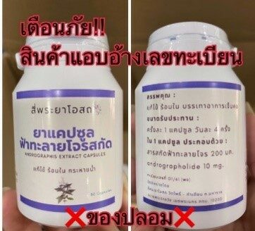 ผลิตภัณฑ์ปลอม สวมเลข อย. ของผลิตภัณฑ์อื่น หรืออ้างว่ามีฟ้าทะลายโจรเป็นส่วนประกอบ