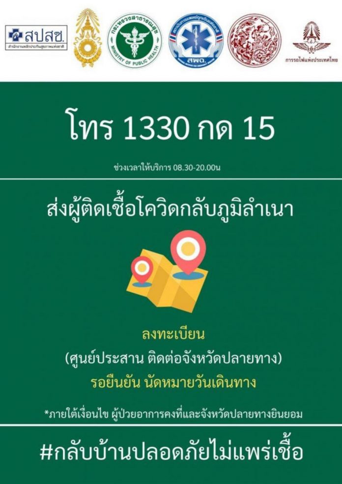 เปิดสายด่วน 1330 กด 15 ส่งผู้ป่วยโควิด-19 กลับไปรักษาตัวที่ภูมิลำเนา