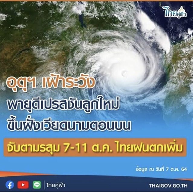 “เพจไทยคู่ฟ้า” โพสต์เตือนประชาชน ระวังพายุดีเปรสชันลูกใหม่ 7-11 ต.ค.นี้ ฝนกระหน่ำไทย