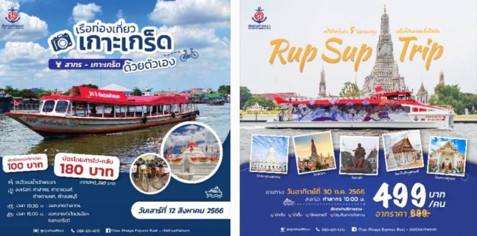 บริษัท เรือด่วนเจ้าพระยา จำกัด รายงานว่า ในฐานะผู้ให้บริการเรือโดยสารในแม่น้ำเจ้าพระยา ได้จัดโปรแกรมท่องเที่ยวพิเศษต้อนรับวันหยุดยาวทริปล่องเรือแม่น้ำเจ้าพระยาในราคาสบายกระเป๋า 2 รายการ ได้แก่ รายการที่ 1 ทริปรับทรัพย์ : Rup Sup” พาล่องเรือไหว้พระรอบกรุง 5 วัด วันอาทิตย์ที่ 30 กรกฎาคม 2566 ช่วงวันหยุดอาสาฬบูชา-เข้าพรรษา รายการที่ 2 ล่องเรือเกาะเกร็ดเที่ยวเอง วันเสาร์ที่ 12 สิงหาคม 2566 ช่วงวันแม่ โดยมีรายละเอียดดังนี้