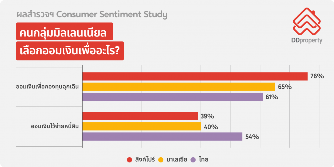 ทั้งนี้ ดีดีพร็อพเพอร์ตี้ ได้เจาะลึกมุมมองความต้องการที่อยู่อาศัยและการวางแผนการเงินของผู้บริโภคกลุ่มมิลเลนเนียลหรือ Gen Y ในแถบอาเซียนที่อยู่ในช่วงวัยทำงานและเริ่มซื้อที่อยู่อาศัยเป็นของตนเอง ซึ่งเป็นกลุ่มเป้าหมายหลักในตลาดอสังหาฯ ท่ามกลางความท้าทายและอุปสรรครอบด้าน ทั้งจากโควิด-19 และสภาพเศรษฐกิจที่ชะลอตัวอย่างต่อเนื่อง ซึ่งส่งผลต่อการเป็นเจ้าของที่อยู่อาศัยในเวลานี้