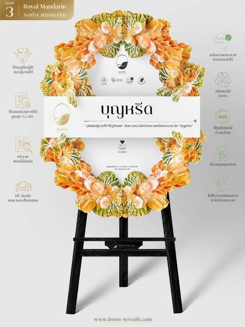 และจะดีแค่ไหน…หากพวงหรีด ที่มอบให้ผู้จากไปมีความเป็นมิตรกับสิ่งแวดล้อม วันนี้ขอพาไปรู้จักกับ “บุญหรีด” พวงหรีดดอกไม้ที่ทำออกมาอย่างประณีตจากกระดาษ ด้วยดีไซน์ที่สวยเรียบและสงบ ซึ่งได้รับแรงบันดาลใจมาจากความงดงามของหมู่มวลดอกไม้หลากหลายเฉดสี และศิลปะแบบหลุยส์ที่ 14 มาสร้างสรรค์เข้าด้วยกันจนเกิดเป็นงานดีไซน์สินค้าพวงหรีด