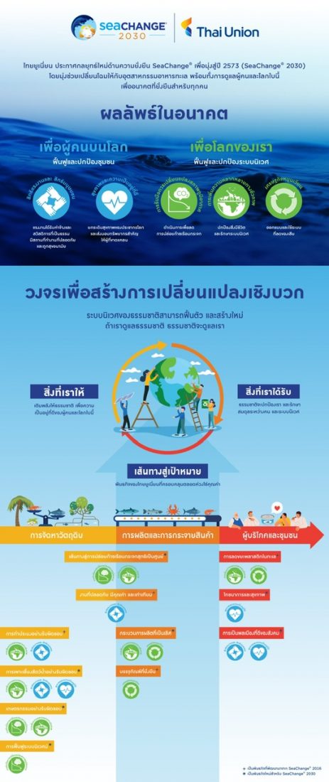 ทั้งนี้ ด้วยวิสัยทัศน์ของบริษัทในการที่จะก้าวไปเป็นบริษัทอาหารทะเลที่ผู้คนทั่วโลกเชื่อถือมากที่สุด SeaChange® 2030 จะเป็นตัวแปรสำคัญที่จะทำให้เราบรรลุวิสัยทัศน์นี้ สิ่งที่จะเกิดขึ้นต่อจากนี้ ความเปลี่ยนแปลงที่เราช่วยกันผลักดัน จะเกิดประโยชน์ไม่เพียงแต่กับบริษัทเท่านั้น แต่คือความยั่งยืนเพื่อพวกเราทุกคน