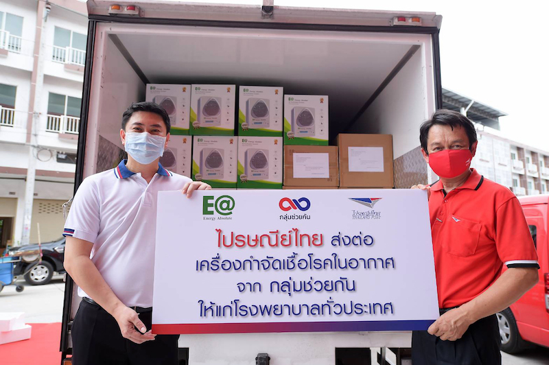 นายก่อกิจ ด่านชัยวิจิตร กรรมการผู้จัดการใหญ่ บริษัท ไปรษณีย์ไทย จำกัด กล่าวว่า ไปรษณีย์ไทย ซึ่งเป็นหน่วยงานในกำกับของกระทรวงดิจิทัลเพื่อเศรษฐกิจและสังคม ได้สนับสนุนการจัดส่งเครื่องกำจัดเชื้อโรคในอากาศ จำนวนกว่า 10,000 เครื่อง แก่โรงพยาบาลทั่วประเทศโดยไม่คิดค่าใช้จ่าย โดยร่วมกับ “กลุ่มช่วยกัน” ภาคีภาคประชาชนที่รวมตัวกัน เพื่อขับเคลื่อนสังคมให้ผ่านพ้นสถานการณ์วิกฤตการแพร่ระบาดของ COVID – 19 และเป็นส่วนหนึ่งในการฟื้นฟูสังคมหลังการระบาดดังกล่าว