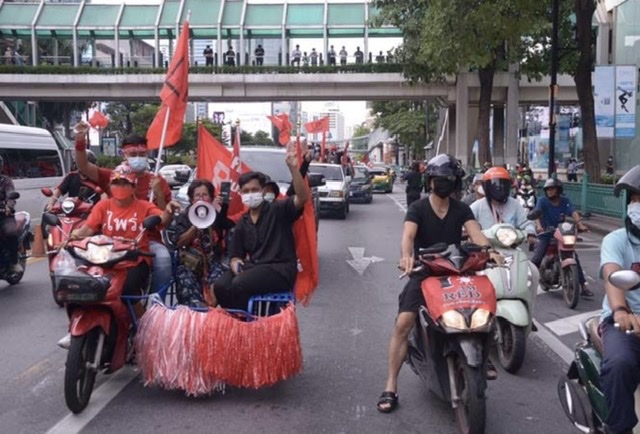 วันนี้ (6 ก.ย.64) เมื่อเวลา 16.00 น. ที่บริเวณสี่แยกราชประสงค์ มีการนัดจัดชุมนุมคาร์ม็อบ โดยจะเคลื่อนขบวนผ่านทางถนนสุขุมวิทผ่านไปบริเวณแยกอโศก และยูเทิร์นกลับเป็นจำนวน 3 รอบ พร้อมมีการบีบแตรไปตามเส้นทางเป็นวันแรก ซึ่งนำโดย นายณัฐวุฒิ ไสยเกื้อ อดีตแกนนำกลุ่มแนวร่วมประชาธิปไตยต่อต้านเผด็จการแห่งชาติ (นปช.) โดยการร่วมตัวกันครั่งนี้เป็นการจัดกิจกรรมควบคู่กับการชุมนุมที่แยกอโศก ของนายสมบัติ บุญงานอนงค์ หรือ บก.ลายจุด เพื่อแสดงจุดยืนในการกดดัน และขับไล่พล.อ.ประยุทธ์ จันทร์โอชา นายกรัฐมนตรี และ รมว.กลาโหม