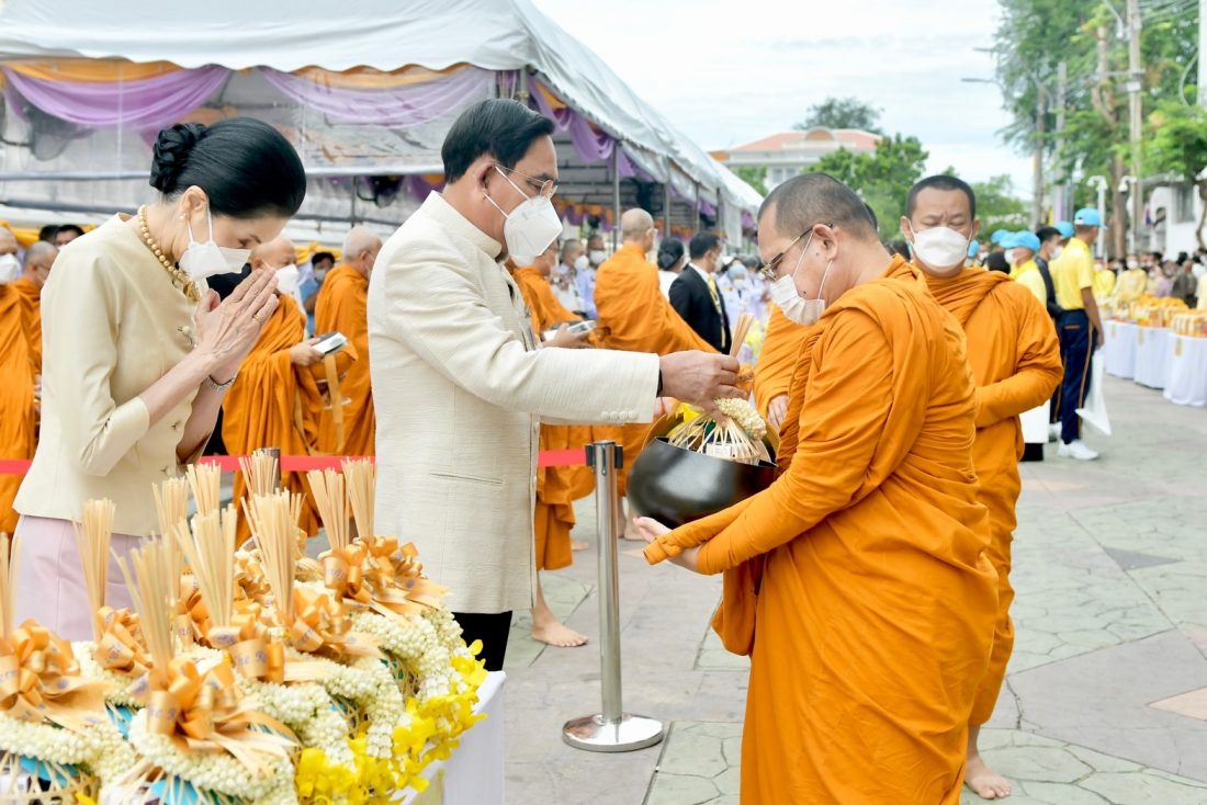 นายกรัฐมนตรีและภริยา เป็นประธานพิธีทำบุญตักบาตรถวายพระกุศล ฉลองพระชนมายุ 8 รอบ สมเด็จพระสังฆราช