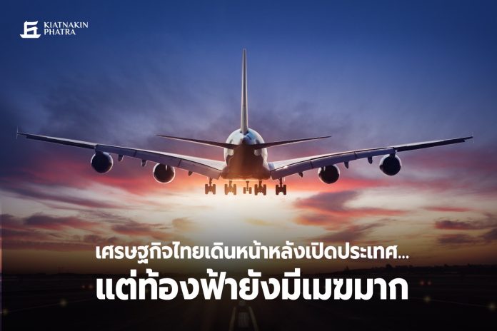 ผู้สื่อข่าวรายงานว่า วันนี้ (2 พ.ย.64) KKP Research โดยเกียรตินาคินภัทร คาดเศรษฐกิจไทยปี 2022 โต 3.9% โดยเศรษฐกิจจะยังอยู่ต่ำกว่าระดับก่อนโควิด-19 จนถึงปี 2023 มองเศรษฐกิจไทยปีหน้าเริ่มฟื้นตัว หลังเปิดเศรษฐกิจและเปิดประเทศต้อนรับนักท่องเที่ยวต่างประเทศ และมีอัตราการฉีดวัคซีนเพิ่มขึ้น แต่นักท่องเที่ยวต่างชาติอาจกลับมาได้อย่างช้าๆ ซึ่งการฟื้นตัวยังคงมีความเสี่ยงอยู่ โดยความเสี่ยงสำคัญในปี 2022 คือการระบาดในประเทศรอบใหม่ที่อาจเกิดขึ้นได้ การฟื้นตัวของจำนวนนักท่องเที่ยว อัตราเงินเฟ้อ เศรษฐกิจจีน และทิศทางอัตราดอกเบี้ยไทย