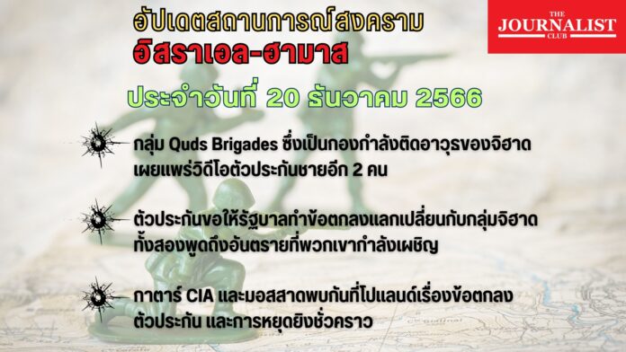 สรุปสถานการณ์ความขัดแย้งระหว่างอิสราเอล-ฮามาส (20 ธ.ค. 2566)กาตาร์ CIA และมอสสาดพบกันที่โปแลนด์เรื่องข้อตกลงตัวประกัน และการหยุดยิง
