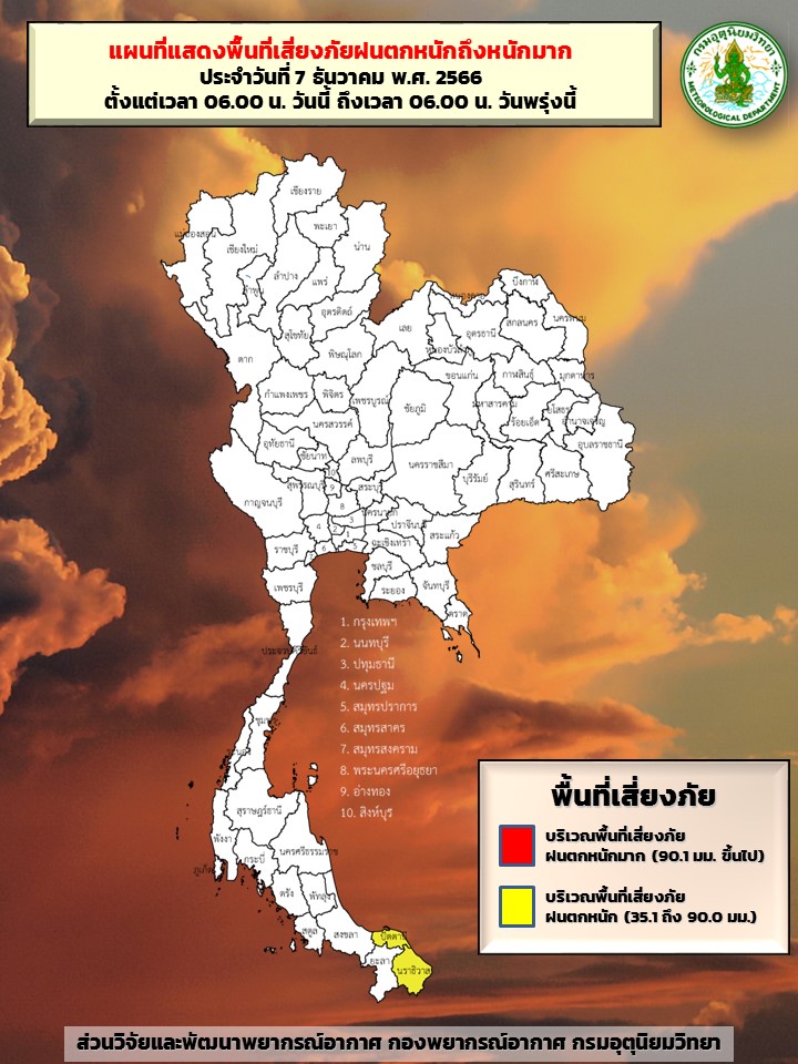 สภาพอากาศวันนี้(7ธ.ค.66) กรมอุตุนิยมวิทยาพยากรณ์อากาศ 24 ชั่วโมงข้างหน้าตั้งแต่เวลา06:00 น. วันนี้ ถึง 06:00 น. วันพรุ่งนี้(8ธ.ค.) บริเวณความกดอากาศสูงหรือมวลอากาศเย็นกำลังปานกลางอีกระลอกหนึ่งจากประเทศจีนแผ่ลงมาปกคลุมภาคเหนือตอนบน และภาคตะวันออกเฉียงเหนือตอนบนของประเทศไทย และทะเลจีนใต้